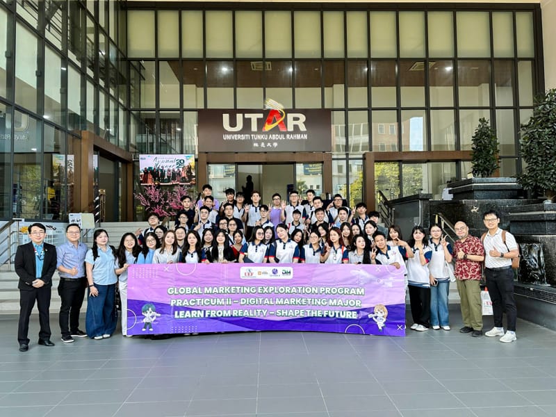 Tại Malaysia, sinh viên Khoa Marketing có dịp đến tham quan và học tập tại Đại học UTAR, tìm hiểu môi trường đào tạo, không khí học thuật và cách tiếp cận giáo dục hiện đại của một trường đại học quốc tế. Song song đó, các bạn đã tham gia hoạt động học tập thực tế tại công ty Tik Star, được tiếp cận những bài học “thực chiến” về Digital Marketing, xu hướng nội dung số và cách doanh nghiệp vận hành các chiến dịch truyền thông trong môi trường số.
