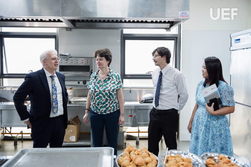 Đại diện Lãnh sự quán Pháp tại TP.HCM tham quan khu vực thực hành nhóm ngành nhà hàng, khách sạn tại UEF