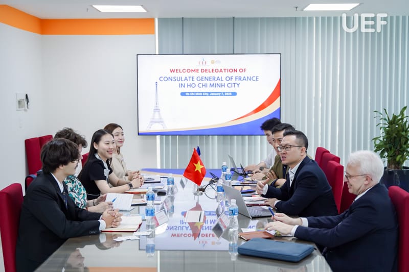 Sáng ngày 7/1, UEF đã đón tiếp các thành viên của Lãnh sự quán Pháp tại TP.HCM đến làm việc. Tại đây, hai bên trao đổi về cơ hội triển khai hợp tác chương trình quốc tế giữa UEF và các trường đại học tại Pháp, chú trọng vào dự án nghiên cứu khoa học.