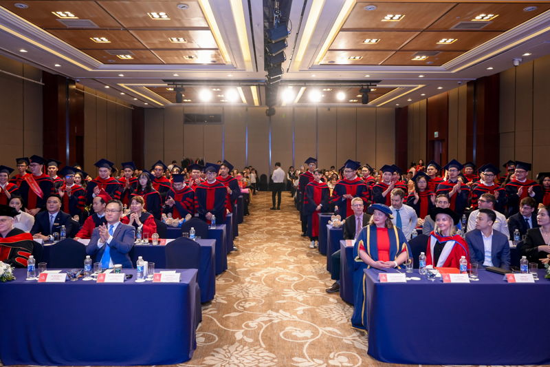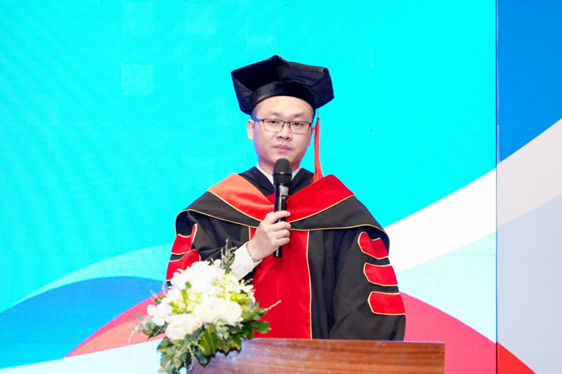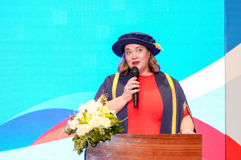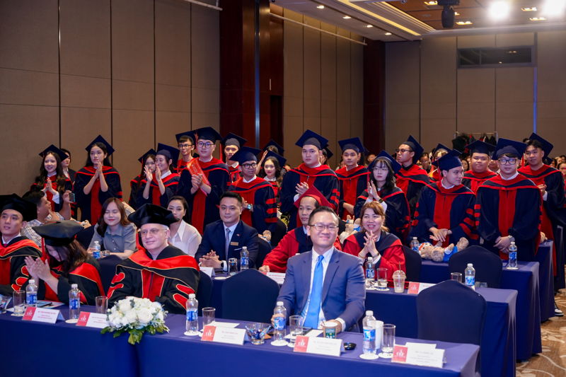Chúc mừng cho hành trình đại học đầy trải nghiệm của các tân cử nhân chương trình quốc tế, TS. Đỗ Hữu Nguyên Lộc đã tuyên dương tinh thần học tập, sự nỗ lực và cố gắng không ngừng của các bạn sinh viên. Những khó khăn, thách thức ấy đã đến thời điểm đơm hoa kết quả. Đại diện Leeds Trinity và Gloucestershire cũng nồng nhiệt chúc mừng cho tất cả 63 tân cử nhân đã hoàn thành xuất sắc chương trình đào tạo quốc tế. Các cô gửi lời cảm ơn đến quý phụ huynh, gia đình các bạn đã tin tưởng lựa chọn trường mình làm nơi học tập, phát triển bản thân.