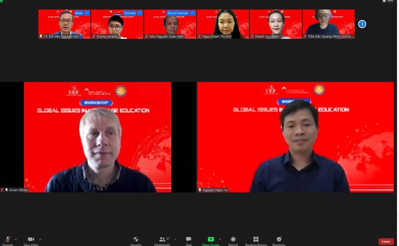 Chương trình có sự tham dự của 2 diễn giả là Giáo sư Arran Stibbe - Trưởng ngành Ngôn ngữ, Trường Đại học Gloucestershire và PGS.TS. Nguyễn Ngọc Vũ, Phó Hiệu trưởng Trường Đại học Hoa Sen, Chủ nhiệm Câu lạc bộ Các cơ sở đào tạo, bồi dưỡng tiếng Anh phía Nam (STESOL). Về phía UEF có TS. Đỗ Hữu Nguyên Lộc – Phó Hiệu trưởng, Viện trưởng Viện Quốc tế; TS. Phạm Thị Ánh Ngọc – Phó Viện trưởng Viện Quốc tế.
