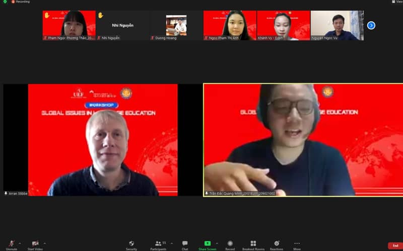 Tại workshop, Giáo sư Arran Stibbe đã chia sẻ về chủ đề "TEFL: Culture and Global Issue". TEFL là viết tắt của cụm từ tiếng Anh: Teaching English as a Foreign Language – là chứng chỉ dạy tiếng Anh cho người nước ngoài. Học viên theo học chương trình TEFL sau khi kết thúc chương trình có cơ hội giảng dạy tiếng Anh cho những người đến từ các quốc gia không sử dụng tiếng Anh như ngôn ngữ thứ 2.