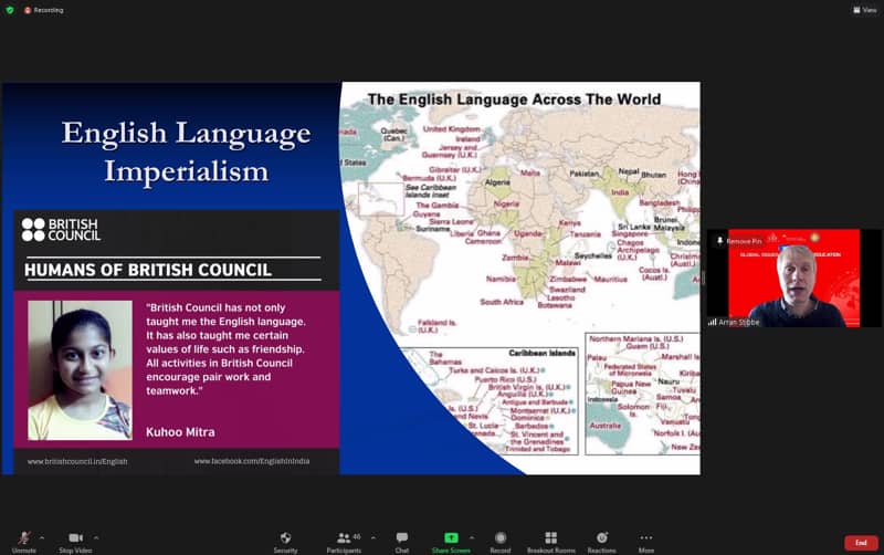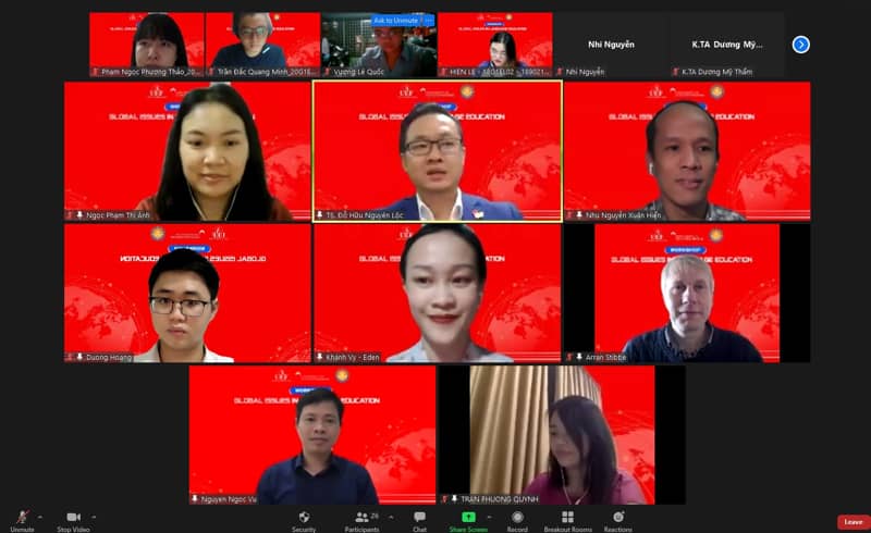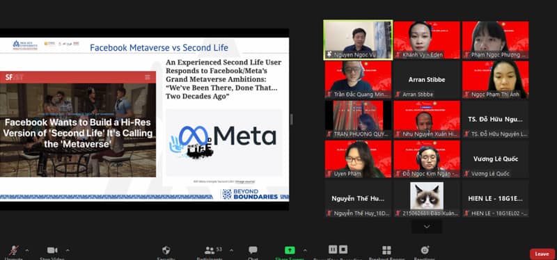 Trong khi đó, PGS.TS. Nguyễn Ngọc Vũ chia sẻ về chủ đề "From Second Life to Facebook Metaverse: Implications for Language Education". Những vấn đề toàn cầu được lồng ghép vào trong giảng dạy chứng chỉ TEFL được phân tích gồm: phát triển bền vững, tiêu dùng xanh và bảo vệ môi trường.
