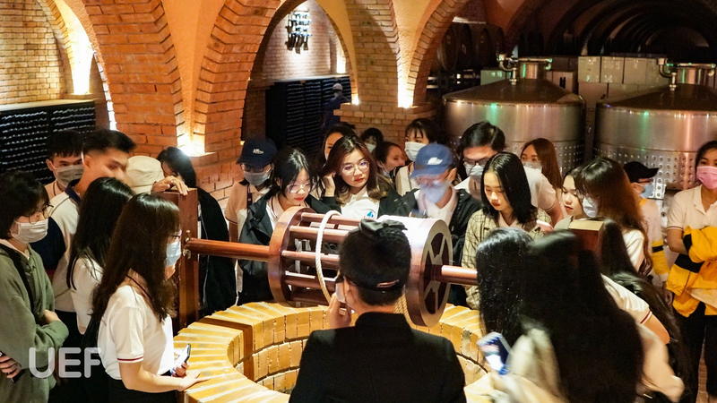 Hoạt động đầu tiên của chuyến đi là tham quan hầm rượu vang Wine Castle tại khu phức hợp Sealinks City. Theo đó, sinh viên được tham quan, tìm hiểu quy trình sản xuất rượu vang, đặc biệt là được thưởng thức những ly rượu đúng "chuẩn" nhà hàng.