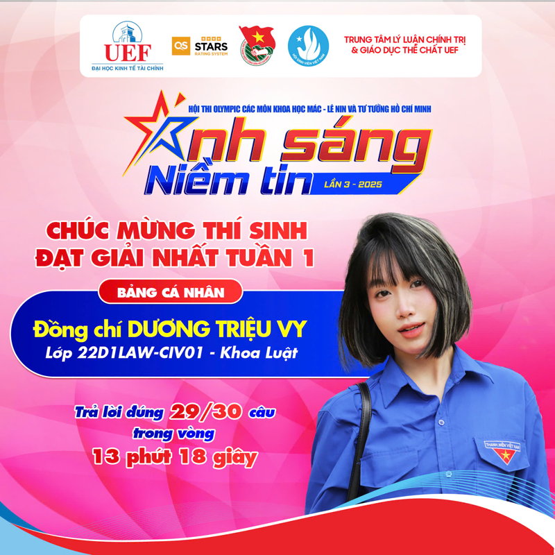 Với mục tiêu tạo nên một sân chơi học thuật hấp dẫn xoay quanh các nhóm kiến thức khoa học Mác - Lênin và tư tưởng Hồ Chí Minh, sáng ngày 10/5 vừa qua, UEF đã tổ chức thành công vòng Bán kết Hội thi Olympic “Ánh sáng niềm tin” lần thứ 3 năm 2025 - Bảng Đội tuyển.