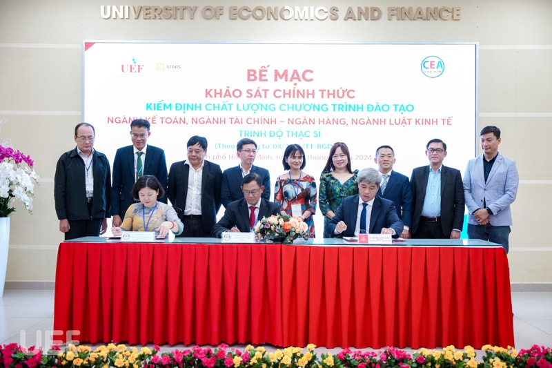 Kết thúc chương trình bế mạc, UEF và đại diện Đoàn Đánh giá ngoài, Trung tâm Kiểm định chất lượng giáo dục – Đại học Quốc gia TP.HCM đã ký kết biên bản hoàn thành đợt khảo sát chính thức chương trình đào tạo thạc sĩ các ngành: Tài chính - Ngân hàng, Kế toán và Luật kinh tế.