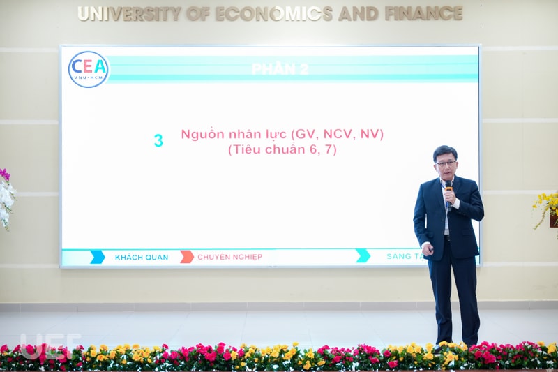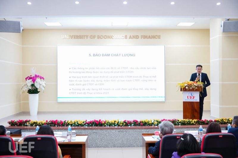 Theo đó, từ ngày 05 đến ngày 08/8/2024 tại UEF, Đoàn Đánh giá ngoài thuộc CEA-VNU-HCM đã tiến hành các hoạt động: nghiên cứu hồ sơ minh chứng; khảo sát thực tế; phỏng vấn lãnh đạo, cán bộ, giảng viên, nhân viên, người học, cựu người học, các nhà tuyển dụng để phục vụ công tác kiểm định chất lượng 3 chương trình đào tạo: Kế toán, Tài chính – Ngân hàng và Luật Kinh tế trình độ thạc sĩ theo bộ tiêu chuẩn của Bộ Giáo dục và Đào tạo.