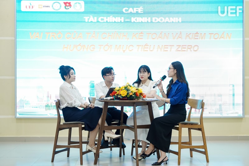 Tiếp nối chuỗi hoạt động học thuật gắn với thực tiễn, Khoa Tài chính - Kế toán UEF đã tổ chức chương trình “Café Tài chính - Kinh doanh” mùa 4, tập 3 với chủ đề “Vai trò của tài chính, kế toán và kiểm toán hướng tới mục tiêu Net Zero” vào sáng ngày 18/04. Chương trình mở ra không gian để sinh viên chủ động tham gia, trao đổi và thể hiện quan điểm cá nhân, mang đến góc nhìn cập nhật về xu hướng phát triển bền vững gắn với ngành học.