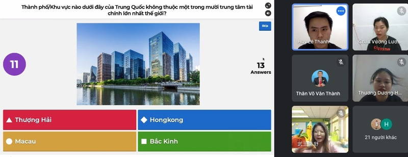 Vòng Chung kết cuộc thi được tổ chức trực tuyến với sự tham dự của TS. Nhan Cẩm Trí - Phó Hiệu trưởng Nhà trường, TS. Võ Văn Thành Thân - Trưởng khoa Ngôn ngữ và Văn hóa quốc tế, ThS. Phạm Thị Thùy Linh - Phó Trưởng khoa Ngôn ngữ và Văn hóa quốc tế cùng các giảng viên khoa và 5 đội thi.