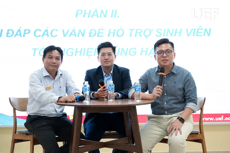 Từ góc độ người đồng hành, ThS. Lê Dũng, ThS. Nguyễn Thanh Lâm và ThS. Nguyễn Nam Trung đã chia sẻ những kinh nghiệm, giải pháp hiệu quả để sinh viên tháo gỡ khó khăn, như: cách xây dựng kế hoạch học kỳ cá nhân, tận dụng học kỳ hè, tiếp cận kênh hỗ trợ chính thống và sắp xếp lộ trình phù hợp năng lực bản thân.