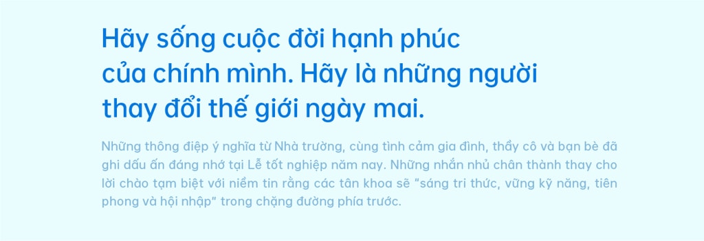 Ai cũng phải bắt đầu từ đâu đó, dù xuất phát như thế nào thì khi đặt mục tiêu chinh phục tri thức, các bạn đã nỗ lực và đi đến đích. Đó là thành quả xứng đáng để giờ phút vinh danh tràn đầy cảm xúc tự hào, biết ơn.