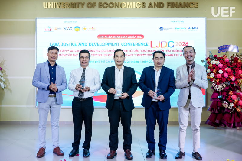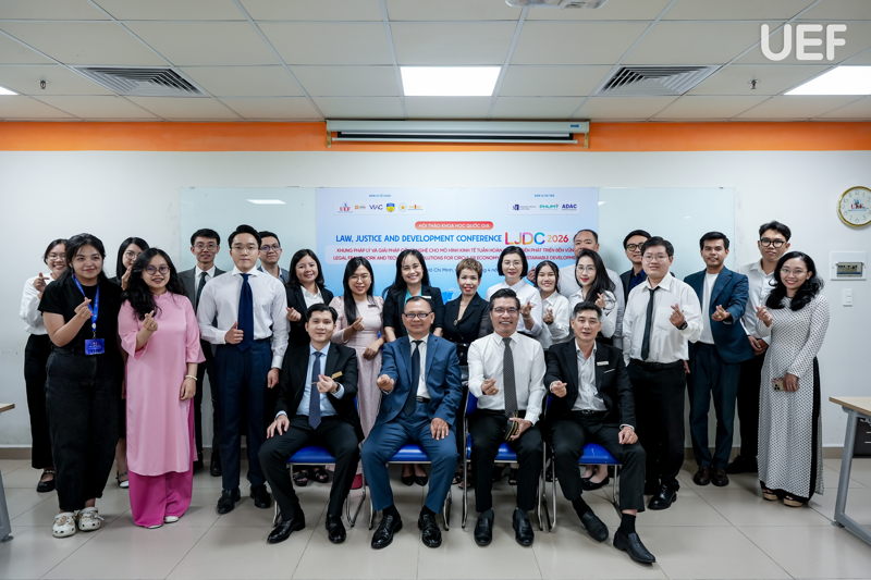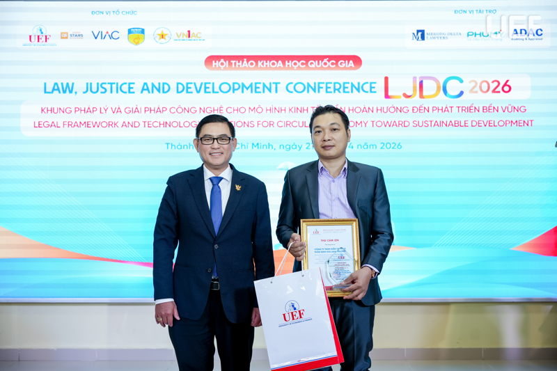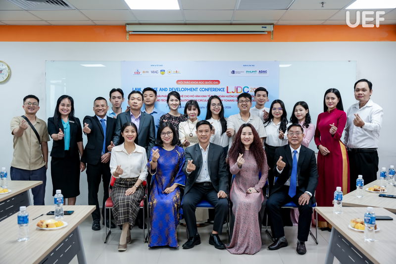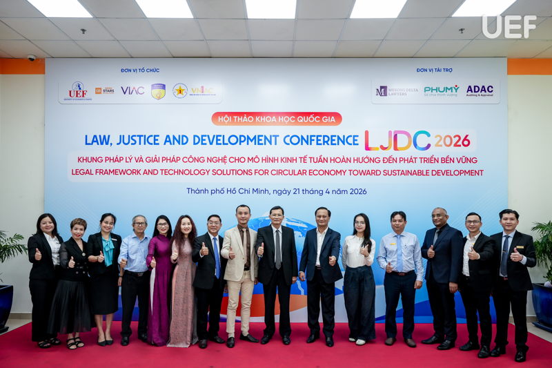 Sáng ngày 21/4, Khoa Luật UEF phối hợp với Trường Đại học Công nghệ TP.HCM (HUTECH), Trung tâm Trọng tài Quốc tế Việt Nam (VIAC) và Trung tâm Trọng tài Thương mại số 1 Việt Nam (VN1AC) tổ chức Hội thảo khoa học Quốc gia “Luật, Công lý và Phát triển” năm 2026 (LJDC 2026) với chủ đề “Khung pháp lý và giải pháp công nghệ cho mô hình kinh tế tuần hoàn hướng đến phát triển bền vững”.