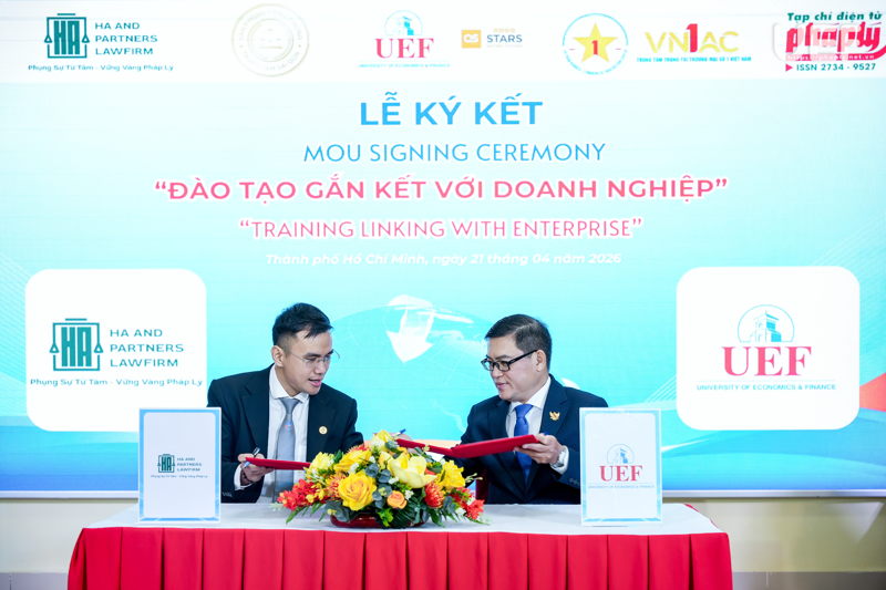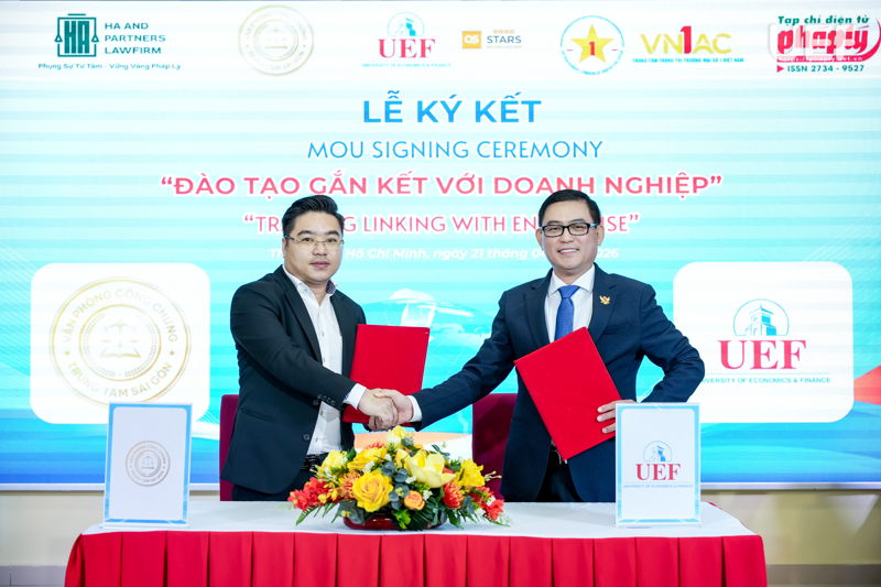Cũng trong phần khai mạc Hội thảo, UEF đã tiến hành ký kết hợp tác (MOU) với 4 đơn vị hoạt động trong lĩnh vực pháp lý, bao gồm Văn phòng Công chứng Trung tâm Sài Gòn, Trung tâm Trọng tài Thương mại số 1 Việt Nam, Tạp chí điện tử Pháp lý và Công ty Luật TNHH MTV Hà và Cộng sự. Việc mở rộng mạng lưới đối tác được kỳ vọng sẽ tạo thêm nhiều cơ hội thực hành, trải nghiệm thực tiễn cho sinh viên nhóm ngành Luật trong thời gian tới.