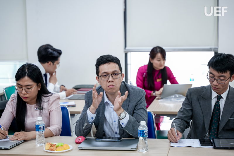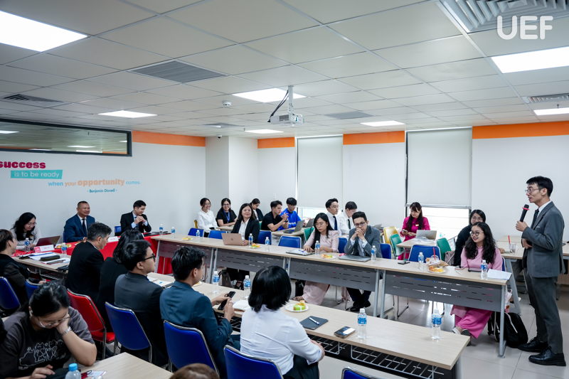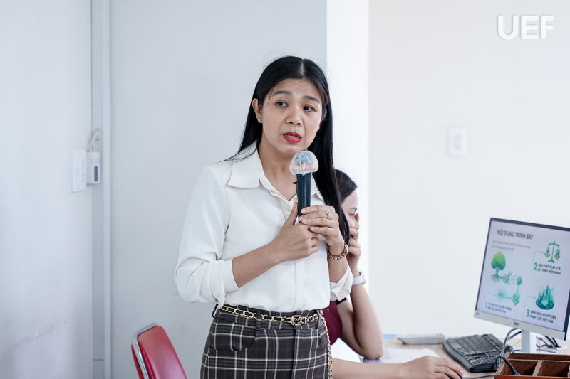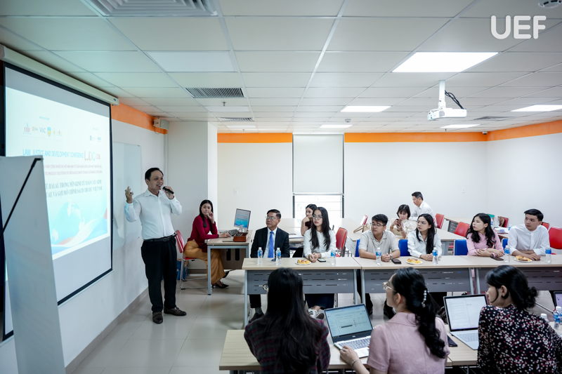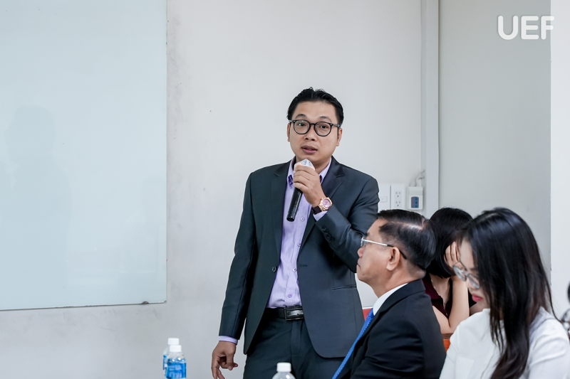 Trong phần trình bày của mình, TS. Phan Bảo Giang - Phó Hiệu trưởng UEF đã lý giải kinh tế tuần hoàn dưới góc độ pháp luật bảo vệ môi trường, đồng thời đưa ra các dẫn chứng từ doanh nghiệp đang triển khai mô hình này. Những phân tích cho thấy tính cấp thiết của việc hoàn thiện hệ thống pháp lý nhằm tạo hành lang thuận lợi cho doanh nghiệp chuyển đổi, cũng như thúc đẩy các hoạt động gắn với mục tiêu phát triển bền vững. Từ đó, nhiều giải pháp về chính sách và pháp luật được gợi mở, tạo nền tảng cho các nghiên cứu tiếp theo.