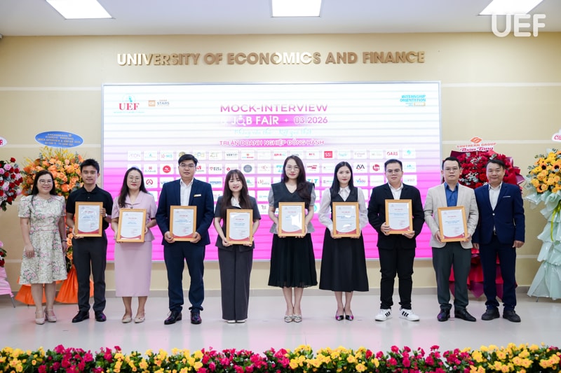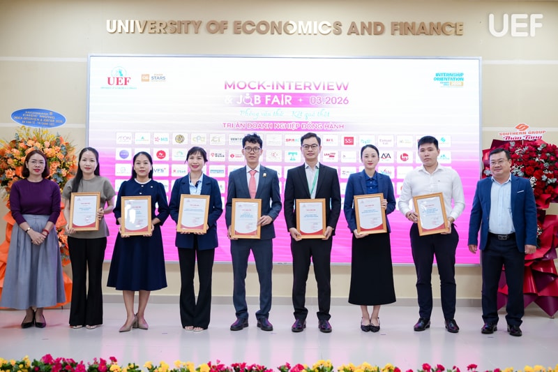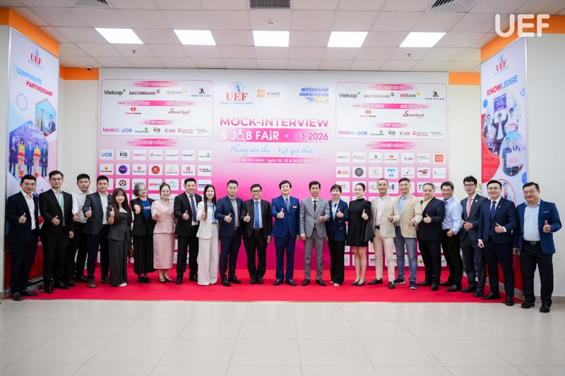 Sáng ngày 4/3, UEF đã khai mạc chương trình Mock-Interview & Job Fair 03/2026 với sự tham gia của hơn 160 doanh nghiệp, mang đến hơn 6.500 vị trí thực tập và việc làm cho hơn 3.000 sinh viên, đặc biệt là sinh viên năm cuối. Chương trình do Trung tâm Hợp tác doanh nghiệp UEF triển khai, tiếp tục khẳng định hiệu quả mô hình kết nối Nhà trường - Doanh nghiệp - Sinh viên.