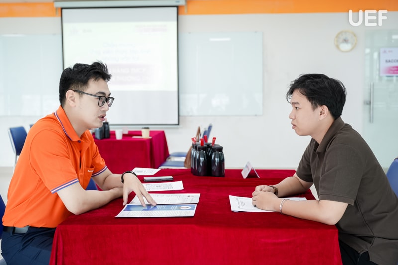 Đại diện Sacombank cũng trân trọng sự đồng hành, cởi mở của UEF trong nhiều năm qua, khi luôn tạo điều kiện để doanh nghiệp tham gia sâu vào hoạt động đào tạo, kiến tập, thực tập và góp ý chương trình học. Đặc biệt, ông nhấn mạnh: “Chúng tôi đến đây không chỉ để tuyển dụng mà còn để chia sẻ, tư vấn. Buổi phỏng vấn hôm nay không phải là cuộc đấu trí căng thẳng mà là một cuộc trò chuyện thú vị để các bạn có quyền tìm hiểu doanh nghiệp và chúng tôi có cơ hội hiểu các bạn”. Với tinh thần đó, Sacombank kỳ vọng sinh viên sẽ đón nhận góp ý bằng thái độ cầu thị để tiếp tục hoàn thiện mình, sẵn sàng trở thành những nhân tố tiềm năng trong tương lai.