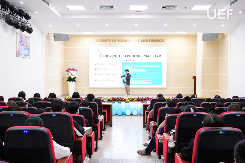 Workshop còn mang đến nhiều chia sẻ thiết thực xoay quanh cách tiếp cận nhà tuyển dụng trong ngành, từ phương pháp kể chuyện theo mô hình STAR đến việc xây dựng CV phù hợp cả về nội dung lẫn hình thức. Phần giao lưu hỏi - đáp diễn ra sôi nổi, cho thấy sự quan tâm nghiêm túc của sinh viên UEF đối với những cơ hội nghề nghiệp gắn liền với công nghệ tương lai.