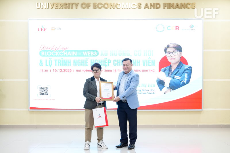 Từ định hướng đó, chiều ngày 15/12, Trung tâm Hợp tác doanh nghiệp UEF đã tổ chức workshop “Blockchain - Web3: Xu hướng, cơ hội và lộ trình nghề nghiệp cho sinh viên”, thu hút sự quan tâm của đông đảo UEFers.