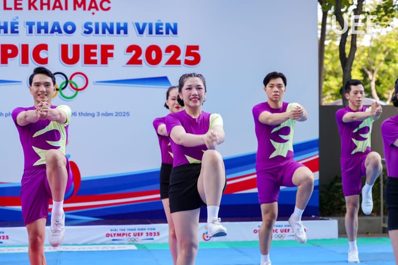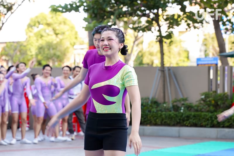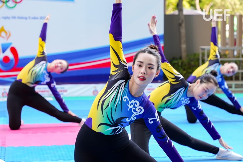 bộ mô Aerobic đã “chào sân” với những màn trình diễn cuốn hút. Đây là nội dung thi đấu được đông đảo sinh viên Nhà UEF quan tâm vì sự kết hợp của nhiều yếu tố.