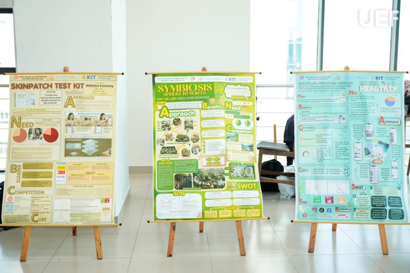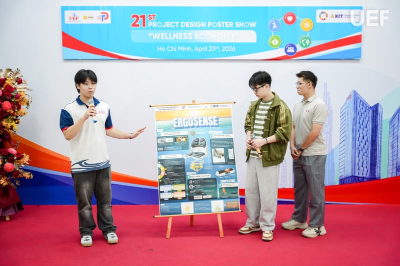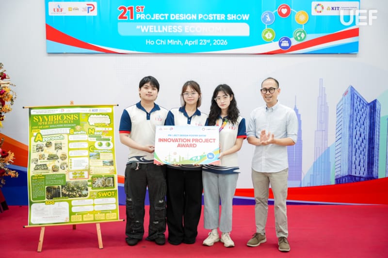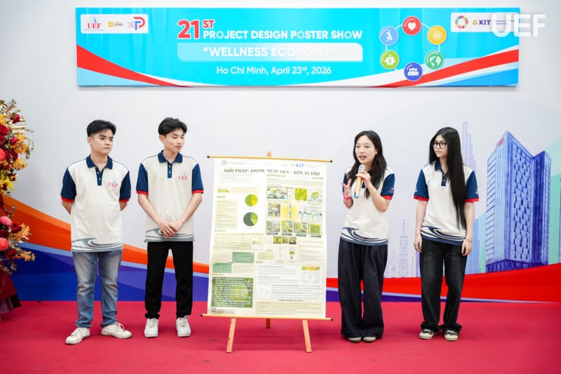 Chiều ngày 23/4, Trung tâm Đào tạo Thiết kế dự án UEF đã tổ chức phiên công bố poster môn học PD2 (Project Design 2) học kỳ 2A, đánh dấu bước chuyển quan trọng của sinh viên từ giai đoạn học phần sang triển khai dự án thực tế với chủ đề “Wellness Economy”.