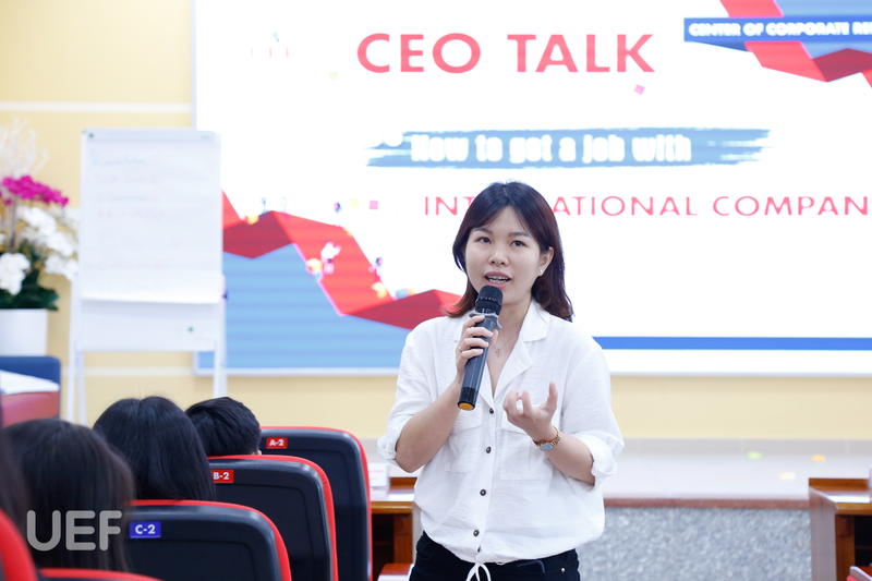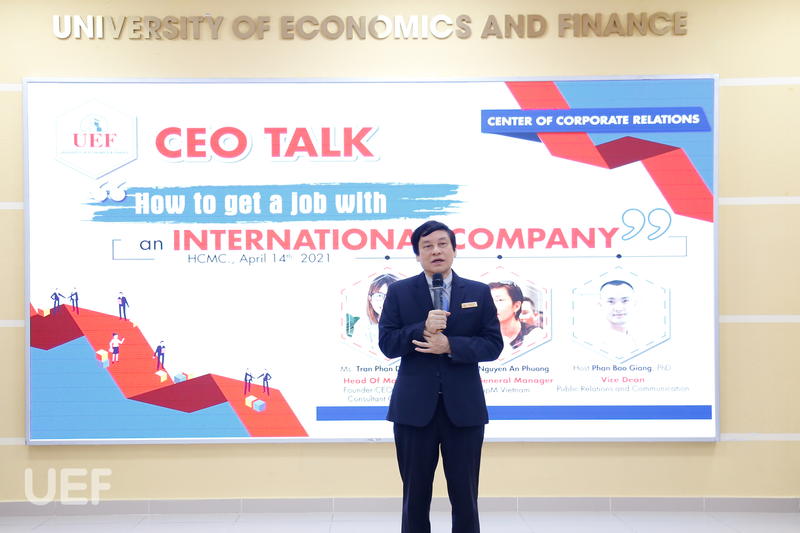 Sáng ngày 14/4 vừa qua, sinh viên năm 3, năm 4 Nhà UEF đã có cơ hội giao lưu, trao đổi cùng các CEO thành công trong môi trường doanh nghiệp đa quốc gia với chuỗi chương trình CEO Talk do Trung tâm Hợp tác doanh nghiệp tổ chức. Buổi đầu tiên với chủ đề “How to get a Job with an International Company” đã thu hút đông đảo các bạn sinh viên tham gia.