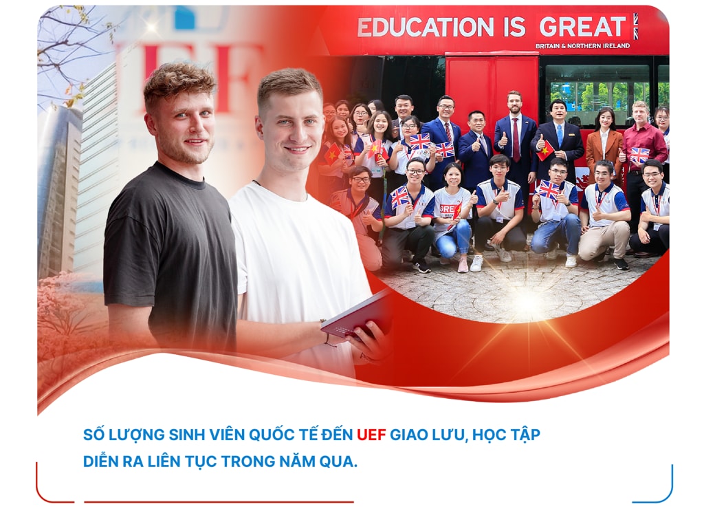 Bên cạnh chương trình đào tạo song ngữ, UEF hợp tác cùng Đại học Leeds Trinity, Đại học Gloucestershire (Anh Quốc) và Đại học Keuka (Hoa Kỳ) đào tạo cử nhân quốc tế tại Việt Nam với các ngành học xu hướng, mở ra nhiều cơ hội học tập cho sinh viên. ![]()