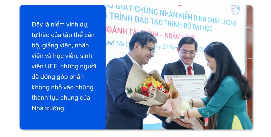 ![]() ![]() Thành lập ngày 24/09/2007 theo Quyết định số 1272/QĐ – TTg của Thủ tướng Chính phủ, Đại học Kinh tế - Tài chính TP.HCM (UEF) định hướng trở thành trường đại học hàng đầu Việt Nam về chất lượng đào tạo theo chuẩn quốc tế, gắn với triết lý: “Chất lượng - Hiệu quả - Hội nhập”. Trải qua 14 năm hình thành và phát triển, đến nay, UEF đã trở thành địa chỉ uy tín trong đào tạo cử nhân, thạc sĩ, tiến sĩ ở đa ngành nghề, lĩnh vực. Hiện Nhà trường có 10 khoa đào tạo và 12 phòng, viện và trung tâm chức năng. ![]() ![]() ![]() Sinh viên tốt nghiệp, phần lớn hiện đang làm việc tại ngân hàng, công ty, tập đoàn kinh tế hàng đầu, trong số đó, nhiều bạn đã khởi nghiệp thành công với vai trò điều hành, giám đốc doanh nghiệp, đóng góp quan trọng cho qua trình xây dựng và phát triển kinh tế của đất nước. ![]() Với sự đồng lòng, gắn kết vì mục tiêu chung, tập thể Nhà UEF từ cán bộ, giảng viên, nhân viên đến các thế hệ sinh viên, học viên cao học đã cùng tạo nên những thành quả đáng tự hào: chất lượng đào tạo ngày càng nâng cao, phong trào hoạt động mở rộng, quan hệ hợp tác doanh nghiệp phát triển, tăng cường đào tạo các sản phẩm quốc tế,... ![]() ![]() ![]() Bên cạnh đó, UEF đã đạt kiểm định chất lượng cơ sở giáo dục theo bộ tiêu chuẩn mới của Bộ Giáo dục và Đào tạo năm 2018; 05 ngành đạt kiểm định chất lượng chương trình đào tạo gồm: Tài chính – Ngân hàng, Quản trị kinh doanh, Ngôn ngữ Anh, Kế toán, Luật Kinh tế. Trong thời gian tới, UEF tiếp tục thực hiện công tác đánh giá chương trình đào tạo các ngành đào tạo còn lại. ![]() ![]() Mỗi năm học, UEF thực hiện hàng chục chương trình giao lưu, ký kết, hợp tác doanh nghiệp nhằm mở rộng thị trường thực tập, cơ hội việc làm cho sinh viên. Mô hình đào tạo gắn kết thực tiễn tại UEF, vì thế phát huy được sức mạnh và nhận được sự tin tưởng của quý phụ huynh và sinh viên. Năm 2021, mạng lưới đối tác của Nhà trường đã lên đến con số hơn 500 doanh nghiệp đồng hành thuộc đa lĩnh vực: Tài chính - Ngân hàng, Thương mại, Luật, Công nghệ thông tin, Truyền thông, Quản trị khách sạn, Ngôn ngữ,... ![]() Với các đối tác quốc tế, UEF cũng mở rộng quan hệ hợp tác với các trường đại học, tổ chức giáo dục uy tín tại các quốc gia như Anh, Hoa Kỳ, Úc, Pháp, Nhật Bản, Malaysia, Thái Lan, Hàn Quốc, Ba Lan, Đức, Cananda,… Tính đến nay, "bản đồ" đối tác quốc tế của trường đã lên đến hơn 50 trường đại học trải rộng ở 30 quốc gia. ![]() ![]() Song song với việc đào tạo, Nhà UEF còn tích cực tham gia các hoạt động xã hội, thể hiện tinh thần “tương thân tương ái” với cộng đồng, nhất là trong tình hình dịch bệnh Covid-19 diễn biến phức tạp, ảnh hưởng nghiêm trọng đến đời sống của người dân trên cả nước. ![]() Trong tháng 4/2020 vừa qua, giữa bối cảnh dịch bệnh Covid-19 tác động đến đời sống sinh hoạt của nhiều hộ gia đình, hoạt động phát gạo cho những người có hoàn cảnh khó khăn của UEF trở thành liều vaccine tinh thần kịp lúc, góp phần lan tỏa giá trị về trách nhiệm cộng đồng, về những tấm lòng vàng luôn sát cánh hỗ trợ, sẻ chia! Hơn 25 tấn gạo được trao đi là kết quả chung tay góp sức từ Ủy ban Nhân dân, Ủy ban Mặt trận Tổ quốc Quận Bình Thạnh, Ủy ban nhân dân, Công an, lực lượng an ninh phường 15; từ Hội từ thiện UEF; quý thầy cô là cán bộ, giảng viên, nhân viên, sinh viên, cựu sinh viên phụ huynh và các mạnh thường quân, đặc biệt là doanh nghiệp đối tác của UEF. ![]() ![]() ![]() ![]() |