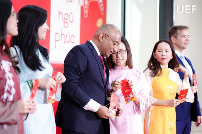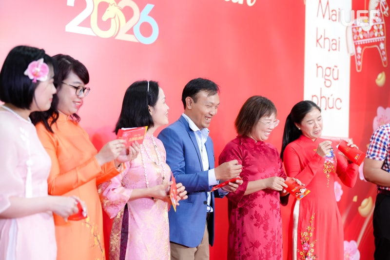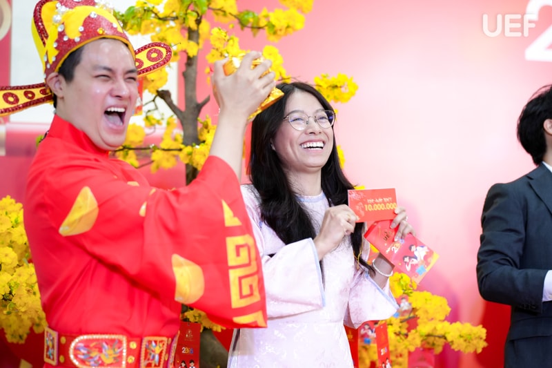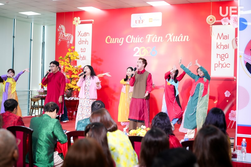 Đặc biệt, chương trình năm nay ghi dấu ấn với nghi thức khai liễn đầu năm do Hội đồng trường và Ban Giám hiệu thực hiện với các từ khóa: An khang - Thịnh vượng - Hạnh phúc - Cát tường - Phát tài - Phát lộc - Viên mãn - Như ý - Đoàn kết - Phát triển - Vững bước - Tương lai. Mỗi từ khóa là định hướng, là kỳ vọng, là giá trị mà tập thể UEF cùng hướng đến trong năm Bính Ngọ. Nghi thức khai liễn thể hiện quyết tâm của lãnh đạo và toàn trường trong việc đồng lòng xây dựng một môi trường giáo dục hiện đại, chuyên nghiệp và bền vững.