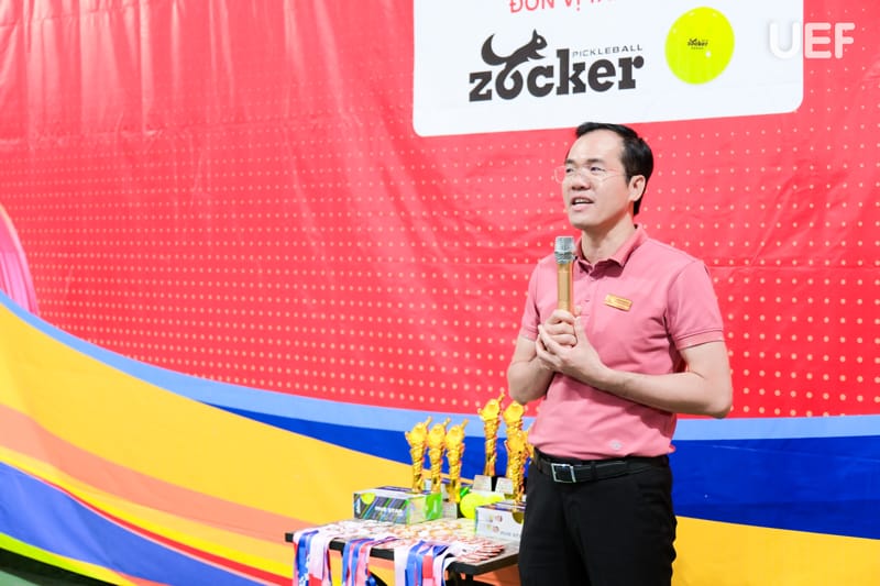 Phát biểu tại lễ khai mạc, đại diện Ban tổ chức, TS. Hồ Viễn Phương - Phó Hiệu trưởng UEF nhấn mạnh giải Pickleball không chỉ là sân chơi rèn luyện sức khỏe mà còn là dịp để các đơn vị trong Khối thi đua số 12 tăng cường giao lưu, học hỏi, xây dựng mối quan hệ gắn bó, góp phần nâng cao đời sống tinh thần cho đội ngũ cán bộ, giảng viên, nhân viên trong toàn khối .