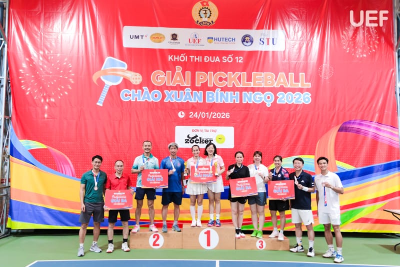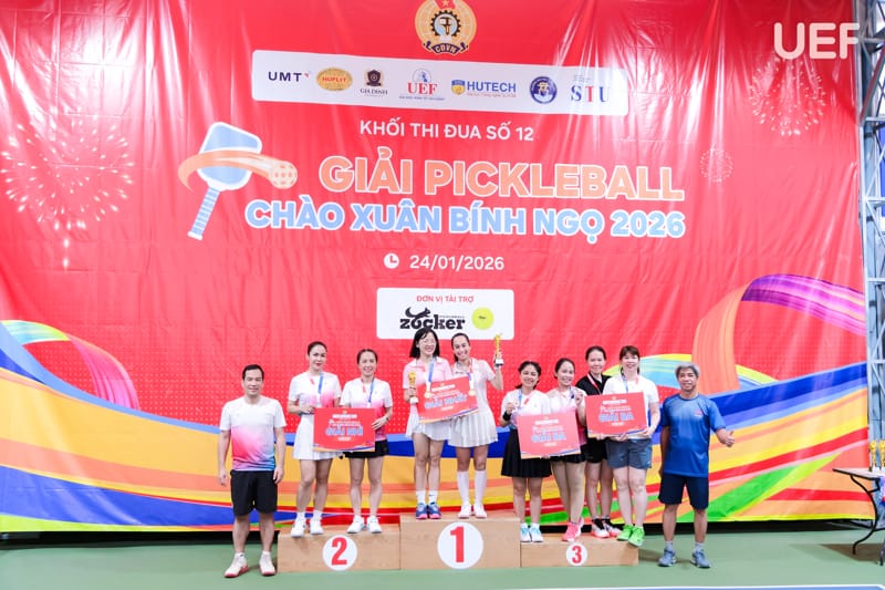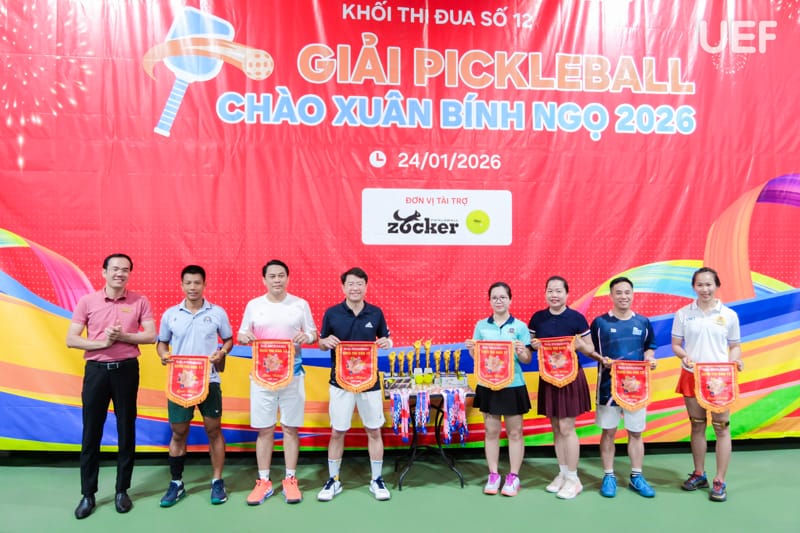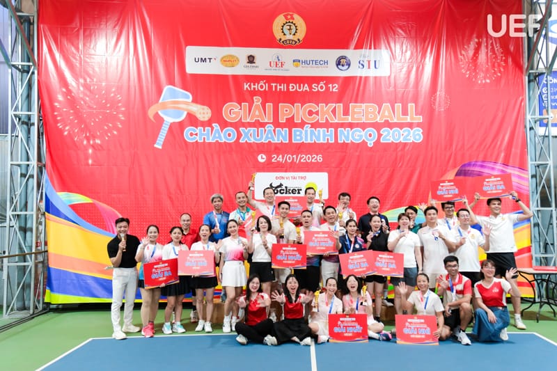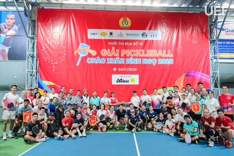 Ngày 24/1, UEF và các trường đại học thuộc Khối thi đua số 12 đã tổ chức thành công Giải Pickleball Khối thi đua số 12 năm học 2025 - 2026, góp phần lan tỏa tinh thần rèn luyện thể thao, tăng cường giao lưu, gắn kết giữa các đơn vị trong khối thi đua giáo dục đại học trên địa bàn TP.HCM.