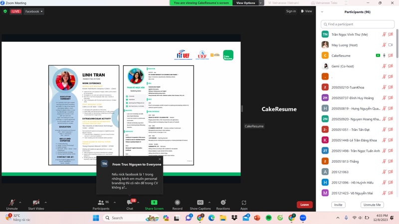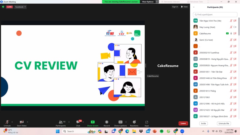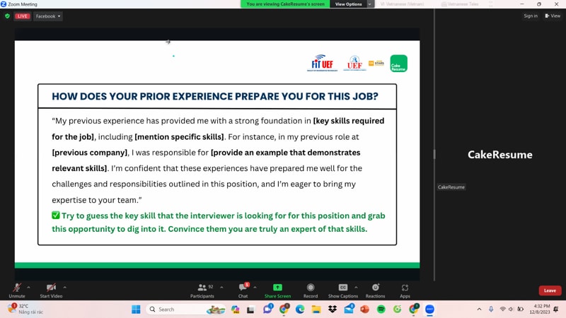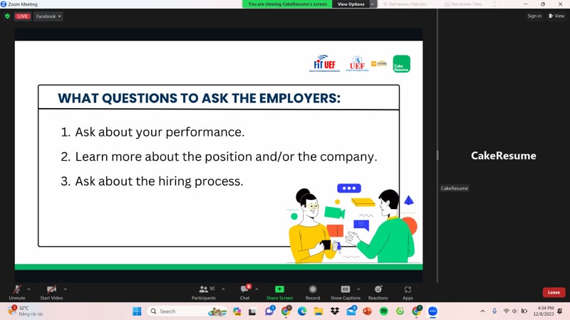 Với mục tiêu mang đến những kiến thức hữu ích, chia sẻ về kỹ năng viết CV và phỏng vấn xin việc để sinh viên gây ấn tượng với nhà tuyển dụng, chiều ngày 8/12, Khoa Công nghệ thông tin đã tổ chức webinar "Ready, Set, Hired: CV and Interview Tips".