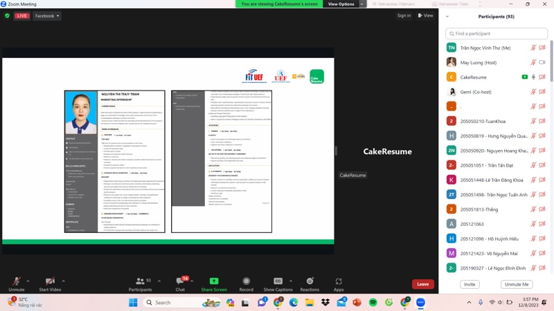Bên cạnh đó, các diễn giả còn đưa ra nhiều tips viết CV cho UEFers như: Điều chỉnh sơ yếu lý lịch phù hợp với công việc ứng tuyển; Nhấn mạnh những kỹ năng liên quan đến công việc; Sử dụng động từ hành động và định lượng thành tựu; Liệt kê các công việc thực tập, dự án và hoạt động ngoại khóa liên quan;…