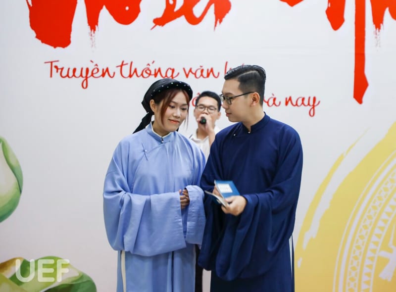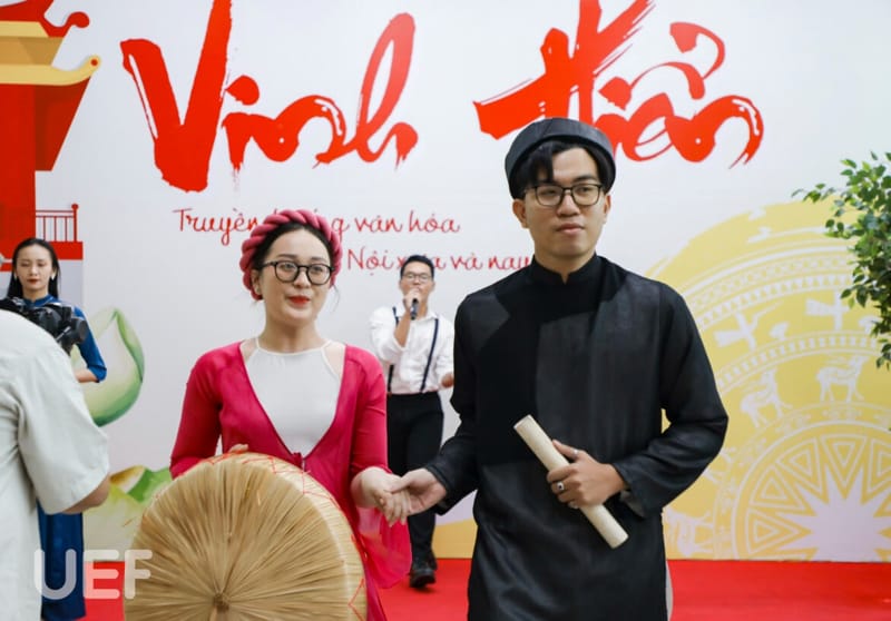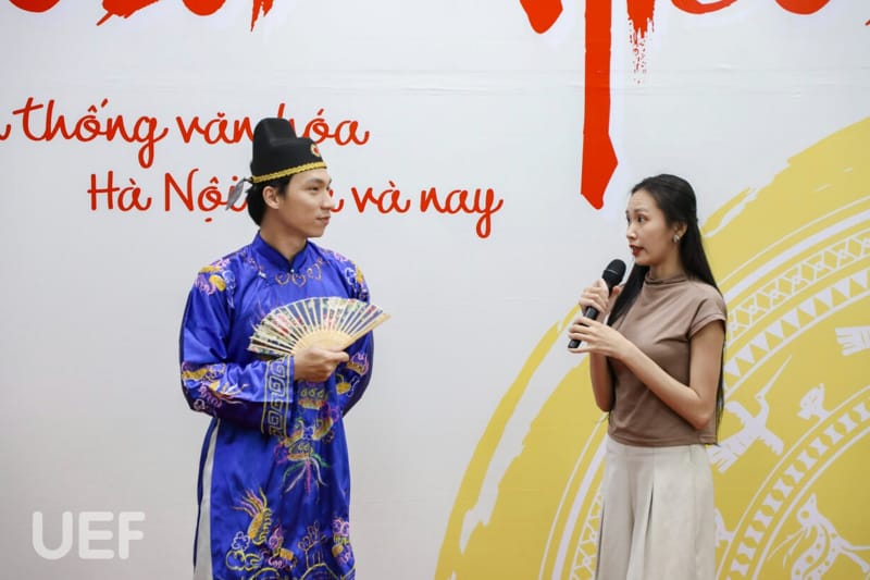 Tinh thần này đã được các bạn sinh viên Nhà UEF khẳng định mạnh mẽ thông qua phần trình diễn trang phục với chủ đề “Sự học” và tiểu phẩm kịch “Vinh quy bái tổ”. Sử dụng chất liệu từ nền văn hóa tri thức Hà Nội, các bạn không chỉ truyền tải thêm nhiều thông tin, kiến thức bổ ích mà còn lan tỏa được những truyền thống tốt đẹp của dân tộc ta.