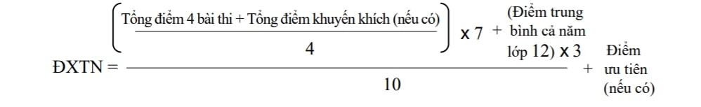 Theo đó, các bạn có thể tính điểm thi tốt nghiệp THPT 2021 bằng công thức sau: