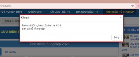 Bước 1: Truy cập: thptquocgia.edu.vn => chọn mục “Tính điểm tốt nghiệp”