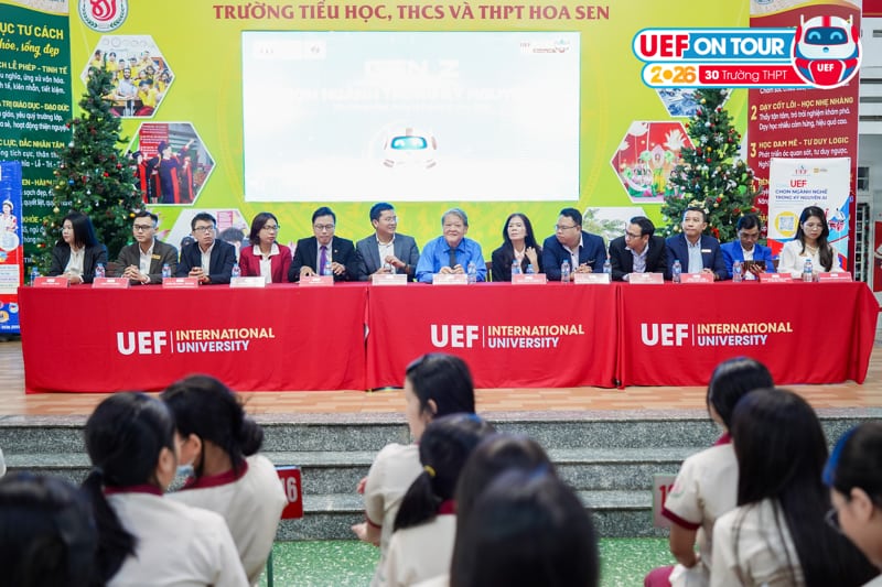 Trước những trăn trở của học sinh trong giai đoạn chuẩn bị cho kỳ thi tốt nghiệp THPT và xét tuyển đại học năm 2026, tiếp nối chuỗi chương trình UEF On Tour 2026, sáng ngày 15/12, UEF đã tiếp tục đồng hành với các bạn học sinh Trường TH-THCS-THPT Hoa Sen (Tân Đông Hiệp) trên hành trình định hướng tương lai, với chủ đề “Cùng Gen Z chọn nghề trong kỷ nguyên AI”.
