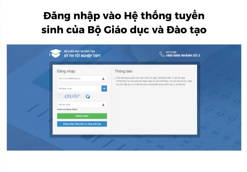 Bước 1: Đăng nhập vào hệ thống tuyển sinh của Bộ GD&ĐT