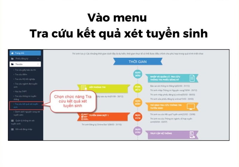 Bước 2: Vào thanh Menu để tra cứu kết quả tuyển sinh
