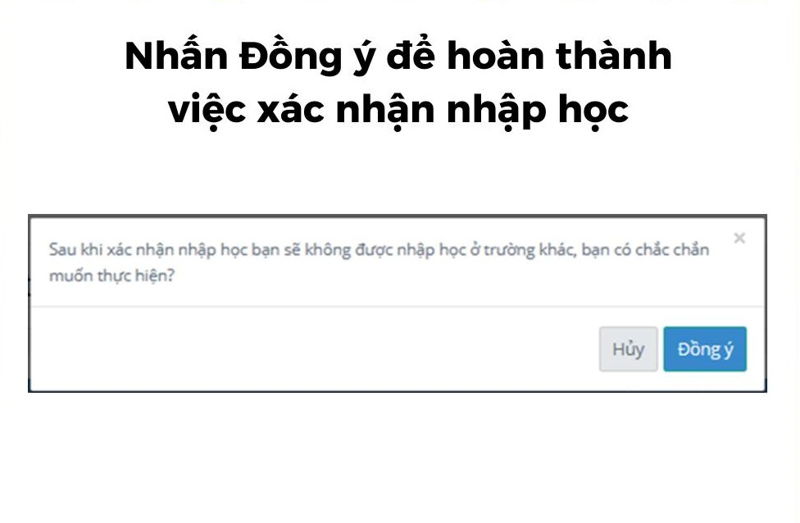Lúc này thí sinh nhận được một thông báo xác nhận một lần nữa quyết định nhập học. Thí sinh nhấn nút Đồng ý để hoàn thành bước 5.