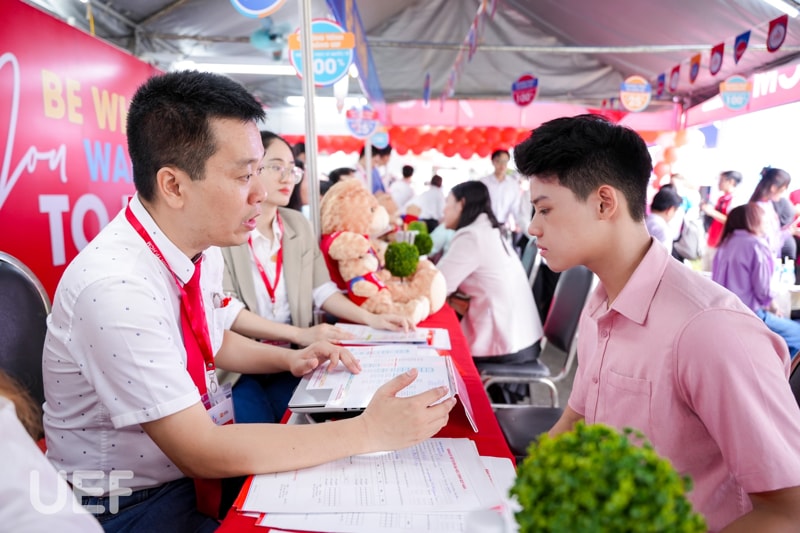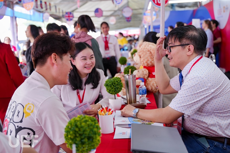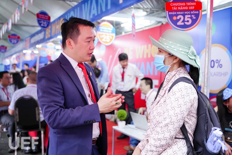 Tại đây, phụ huynh và thí sinh đã được giải đáp cặn kẽ những thắc mắc về đăng ký xét tuyển, được tư vấn sâu về ngành nghề và những chính sách ưu đãi tại Nhà trường. Bên cạnh việc được cập nhật thông tin, những “vị khách” này còn bày tỏ ấn tượng mạnh mẽ với Nhà trường vì sự chỉn chu, nhiệt tình. Nhiều thí sinh cho biết sẽ đặt nguyện vọng vào UEF.