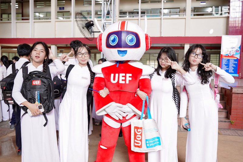 Kết thúc chương trình, gian tư vấn của UEF tại khuôn viên trường thu hút đông đảo học sinh đến tìm hiểu về chương trình đào tạo, môi trường học tập và cơ hội nghề nghiệp trong các lĩnh vực liên quan đến AI. Đội ngũ giảng viên, chuyên viên tư vấn và sinh viên UEF còn trực tiếp trao đổi, chia sẻ câu chuyện học tập, mang đến cho học sinh cái nhìn gần gũi, sinh động về đời sống đại học hiện đại.
